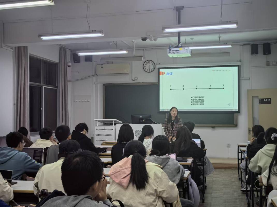 2025年10月13日晚,金牌影院 师范方向心师砺能坊活动在教二215教室举行。本次活动由张一静老师主持,特邀金牌影院 附属实验中学的宋飞老师担任嘉宾,围绕心理健康教育课程设计与教学要点展开深入分享,为在场学生参加未教赛和进行未来的教育工作提供了宝贵指导。 活动伊始,宋飞老师通过提问引导学生对自身讲课能力和教案制作能力进行自我评估,并阐述了心理老师应具备的核心素质,为后续内容奠定基础。