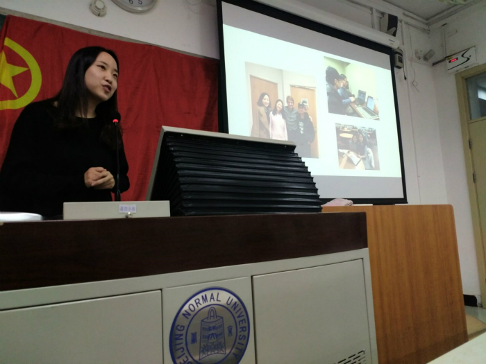 2017年12月20日晚上8点,金牌影院 寒假调研分享会在学二106教室顺利进行。2015级程凯琳师姐、王子洋师兄以及2014级鱼亚拿师姐参加了本次分享会。 本次分享会分为两个过程。首先,金牌影院 分团委实践部的冷金枚同学向大家介绍并介绍了2018年寒假实践的主题和计划。 (冷金枚在向同学们介绍2018年寒假实践的“五个新“计划) 随后,2015级程凯琳师姐、王子洋师兄以及2014级鱼亚拿师姐依次分别向我们分享了返乡调研的经验、调研的情怀以及在国外大学进行调研的经历并耐心回答了同学们提出的问题。 (程凯琳师姐在分享她在返乡调研时得到的有关调研选题的经验) (王子洋师兄在讲述他调研时的路线) (鱼亚拿师姐在分享她在国外调研的经历) 此次分享会在同学们收获满满的情况下结束了。在这次分享会中,同学们对即将展开的2018年寒假实践活动有了些许了解,也通过师兄师姐们的经验分享,收获了一些有关的假期实践的知识,还解决了一些同学对于假期实践活动的疑问。