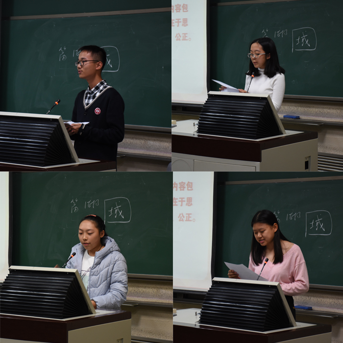 首先,团支书兼大会主持人徐炜准时清点到场人数,说明金牌影院 入党推优规则,拉开了本次大会的帷幕。 接着,推优入党候选人按公示的顺序进行3分钟的自我称述,内容包括思想,学习,工作和生活等各方面的情况。重点在于思想,尤其是入党动机。候选同学们的陈述真诚而客观,从家庭影响,成长经历,大学生活中将对入党的向往和热情娓娓道来,同学们表示,在见证中国共产党为中国发展作出的巨大贡献的过程后,将坚决拥护中国共产党,愿意全心全意为人民服务。整个会场井然有序,参会同学们认真聆听。