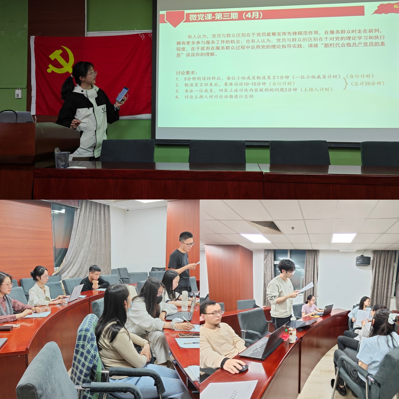 会议第三项,无领导小组讨论微党课。本期微党课由吕相曦同志主持,围绕“新时代合格共产党员的素养”展开无领导小组讨论。讨论共分为“阅读准备、个人陈述、自由讨论、小组发言、总结陈词”五部分。与会党员们积极思考,并结合新时代特征和学生身份,就如何发挥先锋模范作用、强化理论指导实践等展开深入交流。最后,吕相曦同志进行总结,并鼓励大家积极参与党的理论学习与实践,与时俱进,坚持学用结合,在服务群众中提升政治素养和实践能力。
