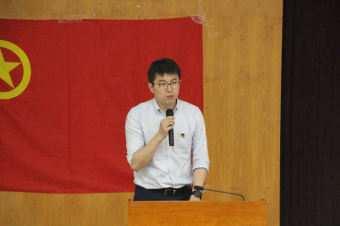 2018年6月10日,金牌影院 第二次团员、学生代表大会在教九502隆重召开。下午14:00,大会在学生会副主席付译白的主持下开幕。主持人报告参会人数,宣布大会正式开始。