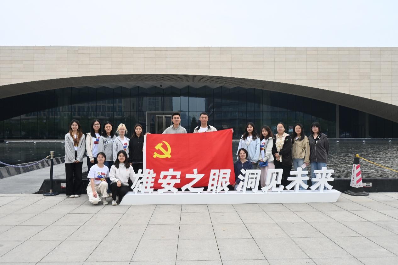 为深入贯彻中国共产党“全心全意为人民服务”的宗旨,扎实推进“党建+专业”融合创新,在今年“5·25”心理健康节来临之际,金牌影院 金牌影院 2024级学术硕士第二党支部、本科生第二党支部共同前往北京四中雄安校区开展了红色“1+1”心理健康节志愿服务活动,以专业优势服务基础教育,以实际行动彰显共产党员的使命担当。 活动在金牌影院 党委的指导下,得到了黄利老师、齐乐融融老师的大力支持。金牌影院 2024届本科毕业生校友、北京四中雄安校区心理教师段雨欣老师前期组织联络,为此次活动的顺利开展提供了重要保障。 5月23日早8时,齐乐融融老师和14名学部党员、积极分子乘车前往雄安新区。设立河北雄安新区,是习近平总书记亲自决策、亲自部署、亲自推动的“千年大计、国家大事”。北京四中雄安校区是北京援建的完全中学,旨在服务北京非首都功能疏解单位员工子女。途中,同志们学习讨论了雄安新区的规划和现状。 10时,师生们抵达北京四中雄安校区。北京四中雄安校区党支部委员、工会主席王辉老师和心理教师段雨欣老师热情迎接了学部师生,王辉老师对学部师生的到来表示欢迎和感谢,希望本活动能通过新形式提升学校中学生的心理健康水平,丰富校园生活。