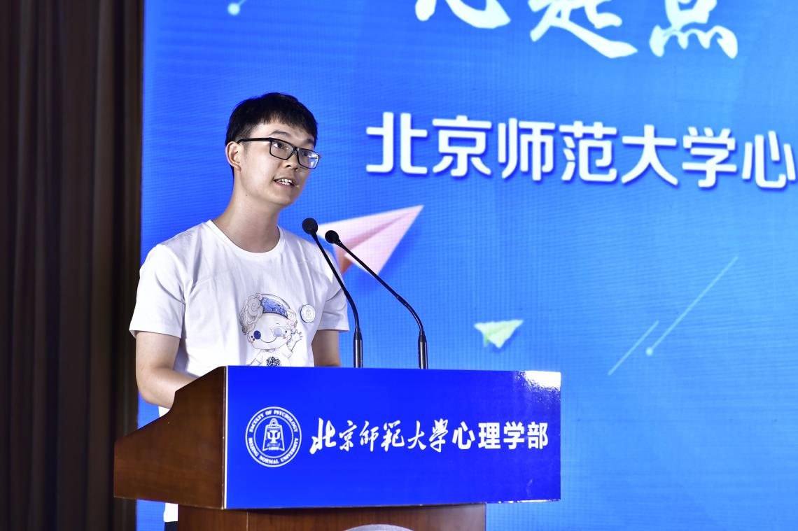 2021级学术硕士林泽瀚作为在校生代表发言。他以心理学家罗杰斯的话语作引,讲述了在金牌影院 的学习故事,希望新生同学们怀抱追求成功的勇气,享受不断调整和改善的成长过程,不断积攒在北师大金牌影院 学习的宝贵经验和美好回忆。