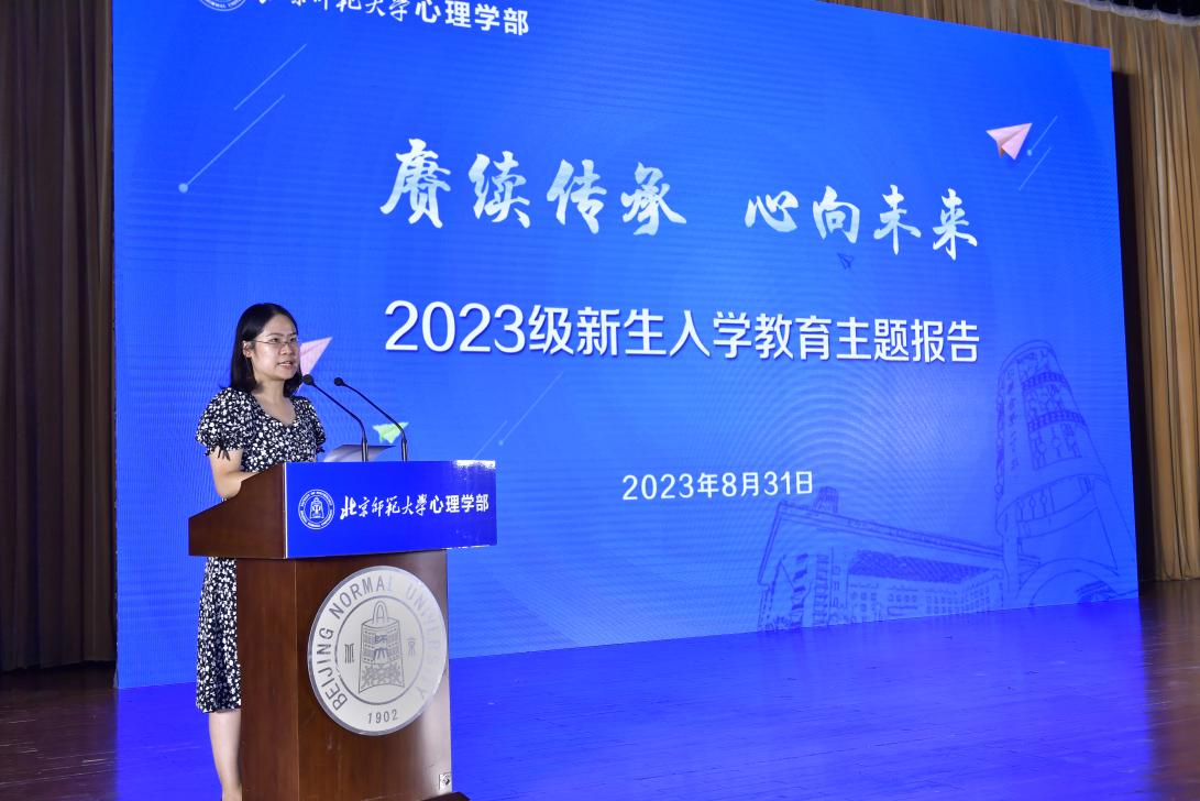 金牌影院 党委书记乔志宏为新生讲述了北师大金牌影院 的发展简史。他从北师大早期的心理学发展开始,生动的介绍了京师大学堂师范馆时期、辅仁大学时期、新中国成立后院系调整时期、改革开放时期、新世纪以来等不同阶段北师大心理学的发展、代表性人物以及前辈们为了心理学的发展所做的突出贡献。最后,他以“用行动承载历史,用激情创造明天”为结语对2023级新生们寄以殷切的期望。
