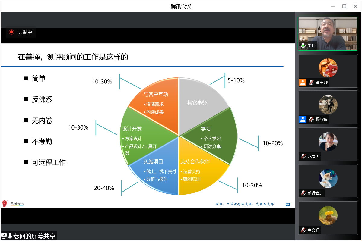 6月6日晚7点,资深人才测评公司善择面向金牌影院 金牌影院 召开主题为“人才测评行业江湖与善择顾问的工作生活”的线上专场宣讲招聘会。金牌影院 校友、善择总经理何文磊进行了分享,就业助管杨欣仪同学主持了宣讲会。