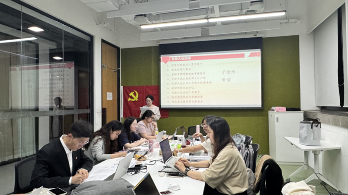 接下来,常洁同志宣读入党志愿书,汇报成为入党积极分子后,在思想、学习、工作等方面的成长。两位入党介绍人任思敏、郭婷婷同志依次发言,介绍其政治立场、工作作风等情况,均支持其入党。随后,支部书记宣读常洁同志政治审查报告。与会党员展开讨论评议,肯定其积极参与支部活动、学习党理论深入等优点,同时指出常洁同志的一些不足,一致认为其具备入党条件。与会正式党员无记名投票表决,计票后,支部书记宣布支部大会同意接收常洁同志为中共预备党员。常洁同志发表入党感言,承诺将强化自我要求,改进不足,提升素养,发挥先锋作用。