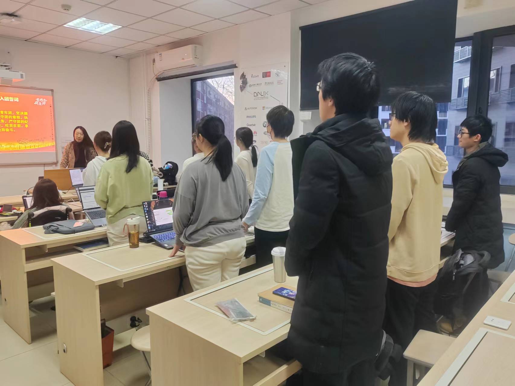 讨论会结束后,支部全体团员全体起立,一起重温了入团誓词。伴随着庄严隆重的入团誓词,团员们不仅回顾了自己入团的初心历程,更坚定了自己作为团员的理想信念。在接下来的一年里,希望每位团员都能配合团支部的工作,积极投入未来的学习与实践中,不负理想,不负青春。