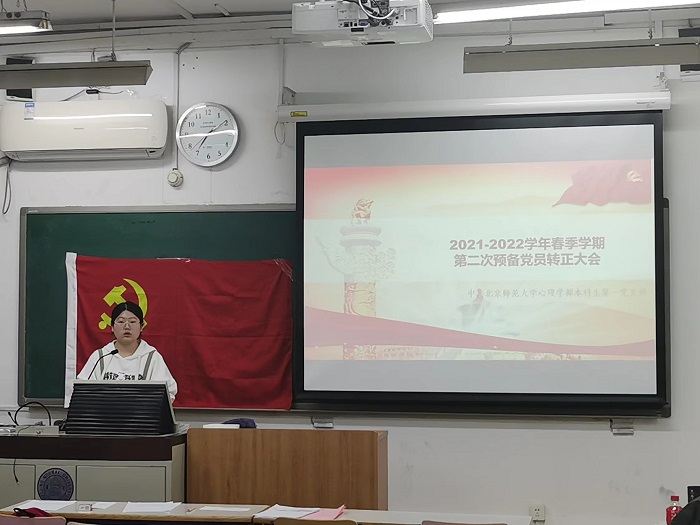 2022年4月29日下午7点,金牌影院 本科生第一党支部在教二106召开了本科生第一党支部2021-2022学年春季学期第二次预备党员转正大会。