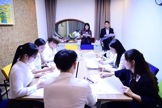 图一:北师大金牌影院 首期MAP模拟面试——王瑞敏副书记与张晓娜老师致辞 为帮助北师大金牌影院 学生体验真实求职环境,学习面试经验,反思自身不足,明确自身定位和制定职业规划,学部MAP中心邀请中化集团优秀人力资源经理等走进校园,为MAP学生举办模拟面试活动。