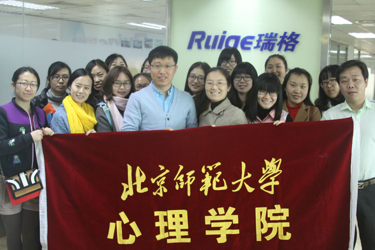 2016年3月16号上午9点,为推进就业实习基地工作、促进学生生涯规划,北师大心理学院组织完成参访北京奥泰瑞格科技有限公司活动。本次参访由心理学院李昕益老师带队,一行17个人。此次参访包含了解瑞格公司的过去、现在与未来展望,体验瑞格心理云所研发的软件、硬件设施,如心理自助系统、体感认知训练仪和瑞格虚拟现实心理干预系统等。