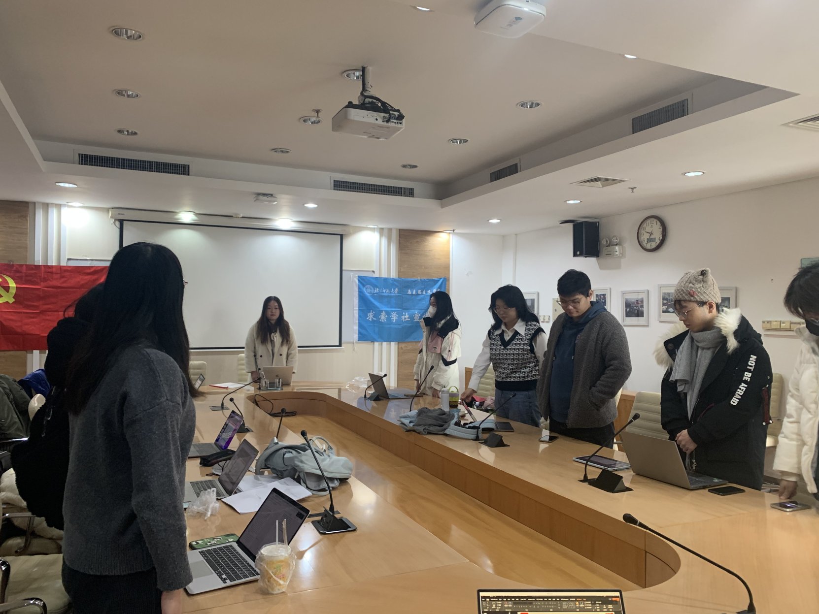 第十五党支部举办。 会议一共分为“奏唱国际歌”,“求索学社的理论学习宣讲”,以及“党支部委员会介绍支部管理情况”三项议程。