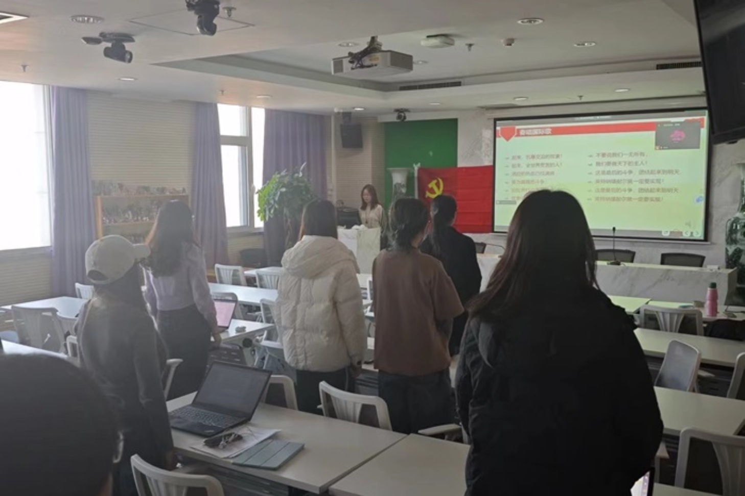2024年1月2日15时30分,金牌影院 本科生第一党支部1月份主题党日活动于后主楼1318顺利开展,并通过“腾讯会议”平台开放了线上参与渠道。活动由陈璐同志主持,共49名成员参与。本次活动的主要内容是学习工具分享。 活动开始,陈璐同志带领全体同志一起奏唱了国际歌。