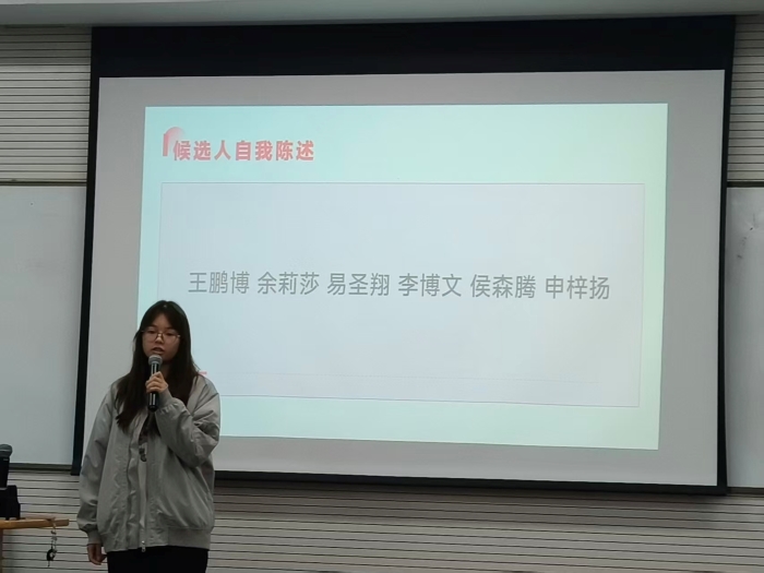 在宣读推选细则后,各位候选人按照顺序进行自我陈述。在自我陈述环节中,六位候选人介绍了自己在思想、学习、工作和生活等方面的情况,详细阐述了自己的入党动机,客观公正的评价了自己的不足之处,展现了对中国共产党的坚定信念和积极向上的精神风貌,表明了自己对加入中国共产党的态度和决心。同时,他们也表示将用更高的标准要求自己,不断提升自我。接着班级团员对各位候选人提出问题,随后团员们对候选人进行打分。在去除最大值和最小值后,统计分数得出评选结果。