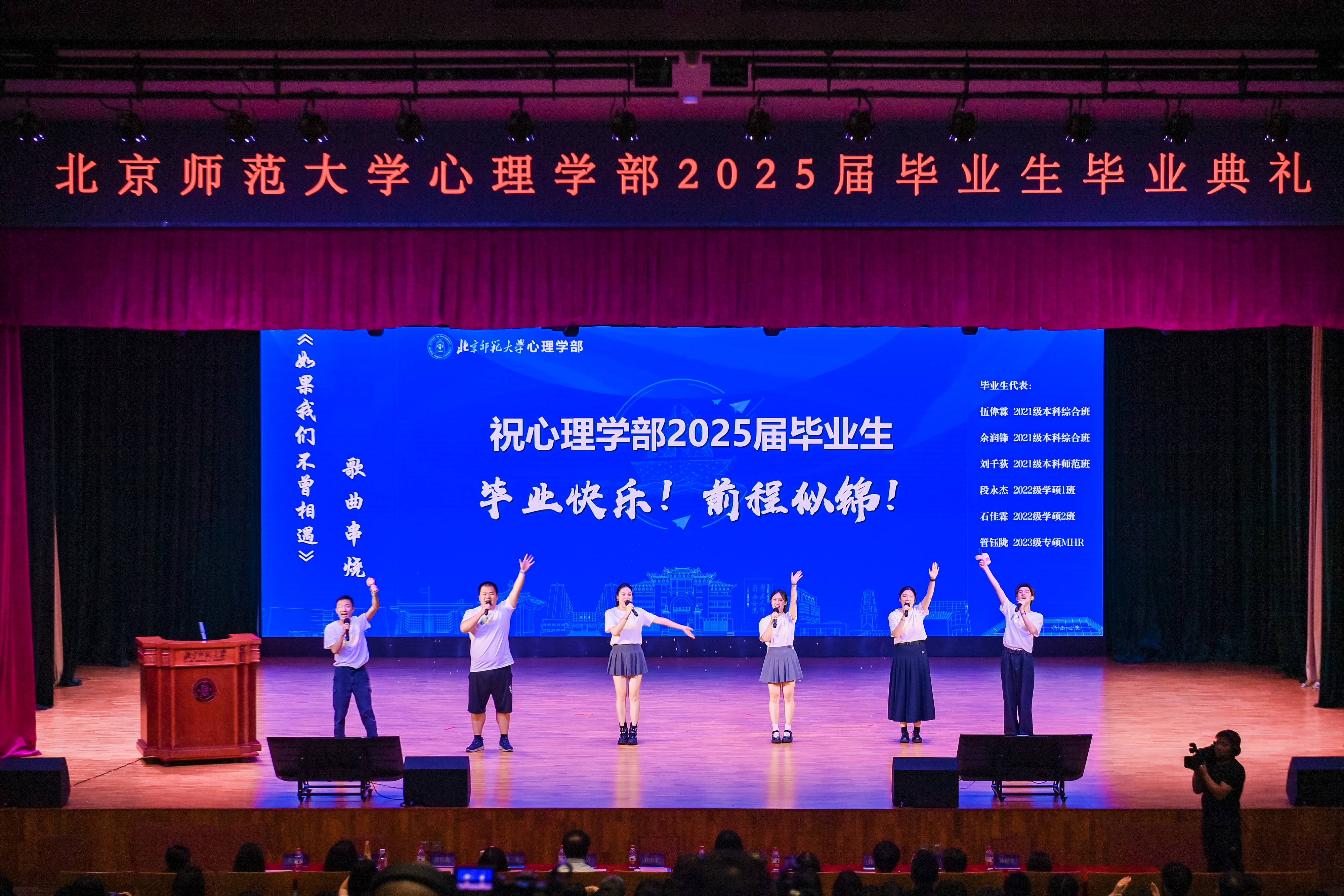 最后,典礼在毕业生代表们精心准备的歌曲串烧节目中落下帷幕。
