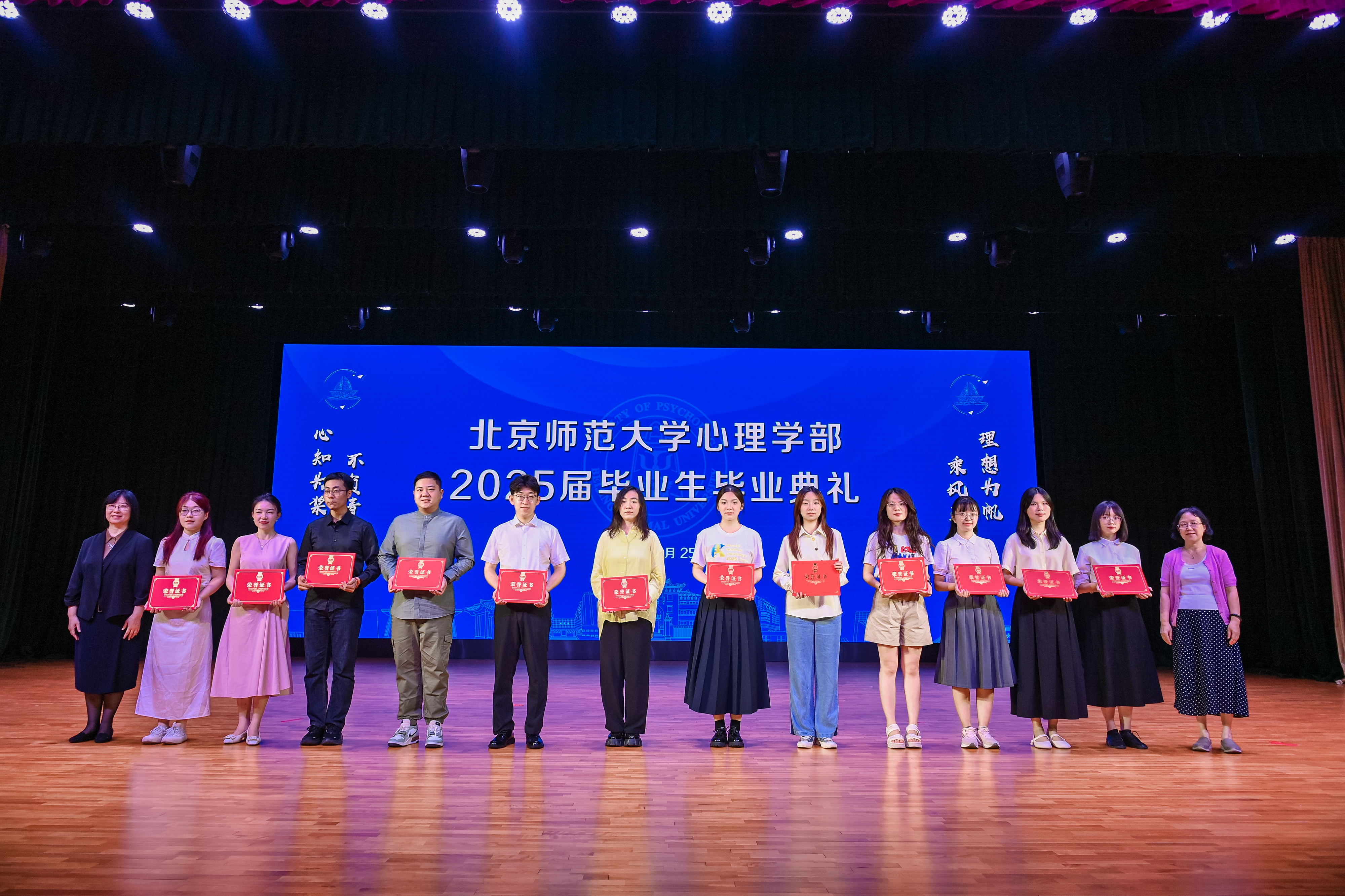 著名心理学家林崇德先生也为毕业生们带来了寄语和祝福(由陈英和教授代为致辞)。林先生首先深情回顾了六十年前北师大首届心理专业学生的毕业情境,他语重心长地指出毕业不是学习的终点,而是步入“社会大学”的起点,鼓励同学们保持好奇心与开放的态度,用专业知识化解“时代之疼”、“社会之痛”。最后,他赠予“豁达勤奋”四字座右铭,字字珠玑,饱含对毕业生们的殷殷期许。