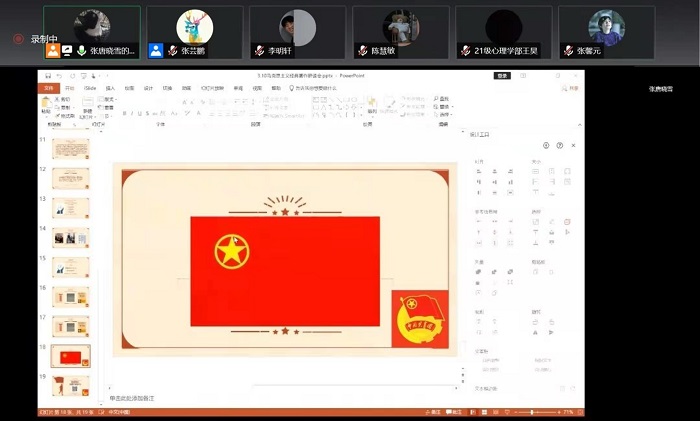 分享过后,学员们再次进入讨论组,就一句最触动自己的话进行分享,每一位学员选择的句子都富有哲理,每一段语句都让大家收获满满,加深了对马克思主义的理解。分享的同时,学员们通过线上打字互动,选出优秀学员代表发言,为其他组的学员们传达本组关于马克思思想的认识。