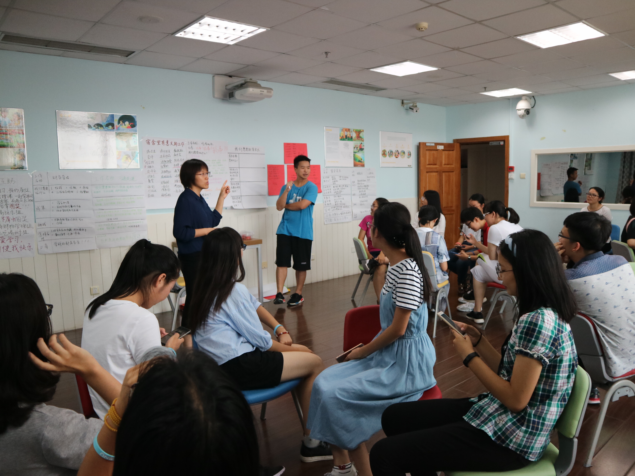 张丽霞老师带领学生一起头脑风暴 本次活动以班级为大单位、以宿舍为小单位,就“如何建设我们想要的宿舍”为主题,通过头脑风暴、小组讨论等活动形式,让同学们自己参与宿舍建设,在轻松、开放、热烈、团结的氛围中明确了在宿舍中角色,能为宿舍做哪些具体有意义的工作,并在活动中选举出宿舍长。 整个活动先是通过活泼生动的热身活动“马兰花开”开启,参与的同学听口令自由组合,通过被落单和被接纳的体验,感受到每个人都需要有归属感和价值感,由此引出归属于一个宿舍团队的重要。 活动开始前的热身活动 接着带导老师引导大家共同思考和头脑风暴,如果想建设一个美好团结的宿舍,需要做哪些有意义的工作?大家集思广益,从事件列举中提取关键词,大致归为协调作息、清洁美化、沟通交流、学业互助、文体活动、后勤保障等任务类别,然后邀请大家按照宿舍围成小圈坐下,宿舍成员根据任务类别逐一认领签字。 同学们以宿舍为单位认领宿舍里的工作 以宿舍为单位展示认领的工作 之后根据认领的任务类别,大家再进行相同任务话题的分组讨论,在讨论做某项具体工作时可能遇到的挑战和如何应对时,大家猛料和妙招齐发,观点和智慧碰撞,在带导老师的点拨、启发下,高潮迭起,大家对未来可能发生的宿舍问题有了更清晰的预见和更深度的思考。 以任务主题来展示 在活动的最后环节,1班、2班以坐空椅子的方式,让学生们体会到彼此的链接和集体的魅力。 1班、2班团体合影 3班和4班通过“说出心里的感谢!”环节,用彩色毛线球拉出了一张链接彼此的网,让大家在感动、欢笑中,收获满满。宿舍团队活动通过新颖活泼的活动形式增强了成员的沟通、协作,较快提升了宿舍乃至班级的凝聚力,相关的跟进、巩固的系列主题宿舍团队活动还将继续进行。 3班、4班同学合影 据悉,本次活动是在大学生中尝试社会情感教育的成功实践,社会情感教育(Social Emotional Learning)SEL是由Daniel Goleman和Eileen Rockefeller Growald于1994年创建的美国伊利诺伊大学的非营利组织“学术、社会和情感学习”(简称CASEL)发起的。SEL的五项核心技能:自我意识、自我管理、社会意识、人际关系技能、负责任的决策技能。我们希望将社会情感教育引起大学第二课堂,让大学生们在参与活动的过程中学习社会情感技能。 (金牌影院 学工办) |