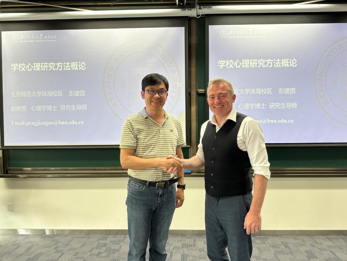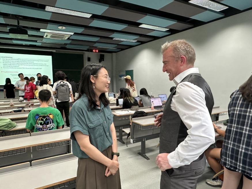 此外,5月21日下午,Savage博士分别观摩了2022级本科生课程《认知心理学》和2021级本科生课程《心理咨询》。他认真聆听了两位任课教师的授课内容,并与师生们进行了互动交流。通过旁听课程,Savage博士对珠海校区的教学水平和学生的学习状态有了更深入的了解,也为学生们带来了国际化的学术视野和启发。