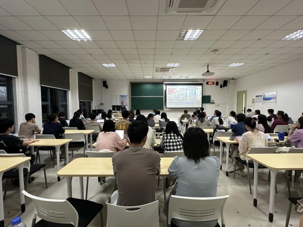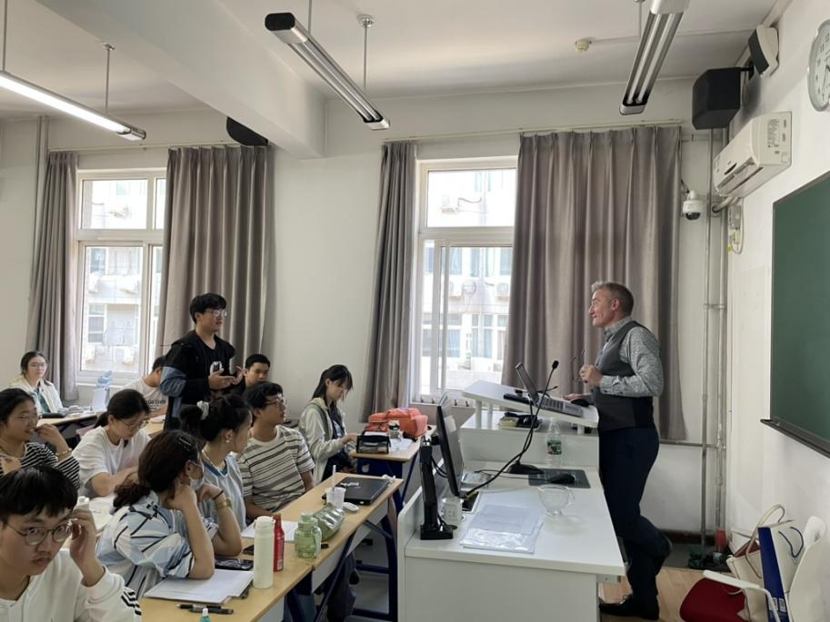 来访期间,Justin Savage博士与学部杨秀杰老师合作,共同为本科生授课,分享内容包括“Computers,Humans and AI”和“Human perception and decision making”。Savage博士分享了自己的专业领域,并用实例详细介绍了相关应用。课程内容激发了学生们对心理学和人工智能领域的兴趣,提高了学生参与国际交流活动的兴趣和信心。 外专讲座