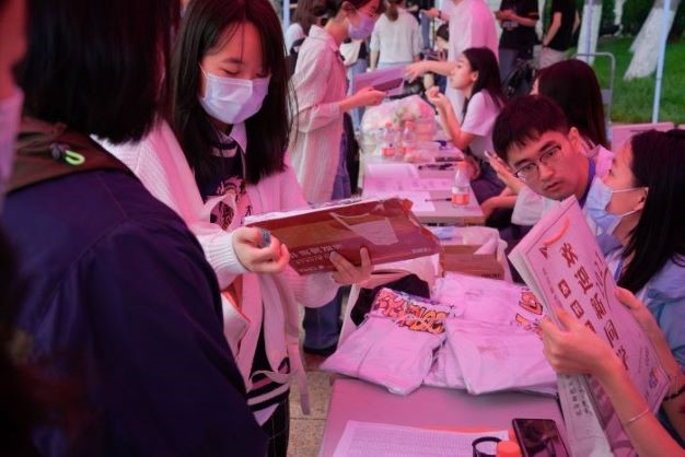 2021年9月5日,伴着秋雨,金牌影院 迎来2021级“心”同学。 京师广场迎新工作现场