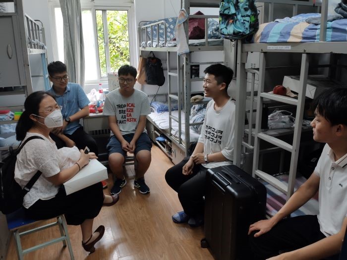 新生班主任与学业导师走访学生宿舍 在疫情防控要求下,家长无法进入校园,本科新生班主任李昕益老师、杨秀杰老师、徐慰老师带领2021级学长导师前往学生宿舍与同学们进行交流、了解同学们的住宿和生活情况,辅导员和学长的关怀为新生带来了一丝慰藉。 心相聚!心征程!从心出发,聆听心声,愿赛客们能在金牌影院 收获属于自己的精彩! |