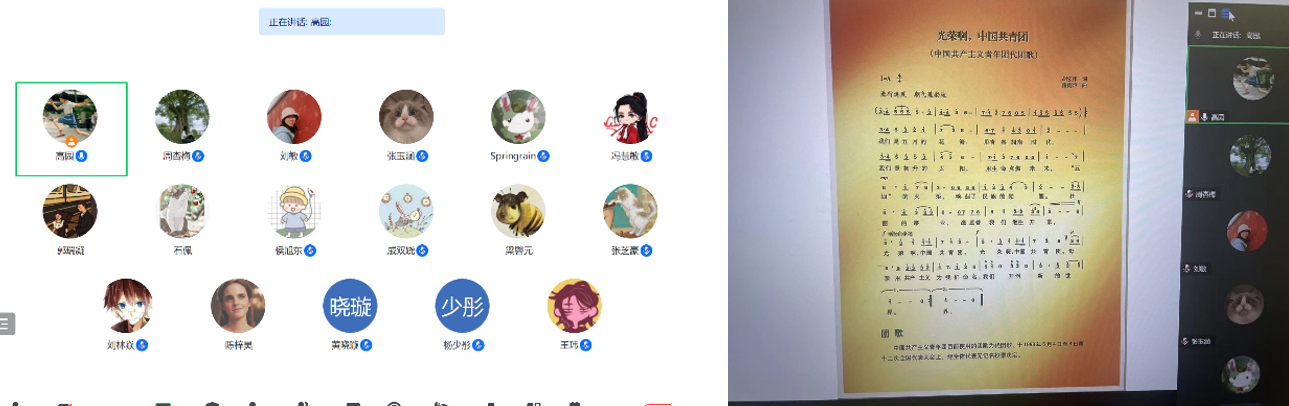 团员党员同学均按时参加,集体重温入团誓词,学习了相关团史、唱了团歌、交谈了自己在生活学习中的感受体会等等,通过这次主题团日活动在支部内同学相互关怀、增强了团员归属感,并引导广大团员青年加强政治意识、组织意识、模范意识,切实发挥好先锋模范作用。