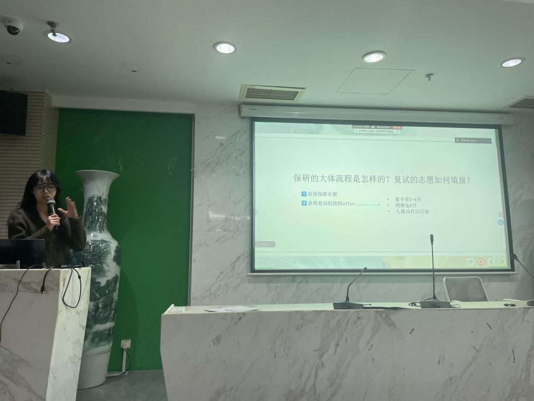 第三位分享的是21级的徐可同学,她分享了跨专业保研的经验,让同学们认识到未来依旧存在更多可能,要打开视野、勇敢尝试。