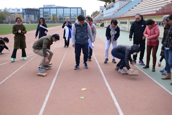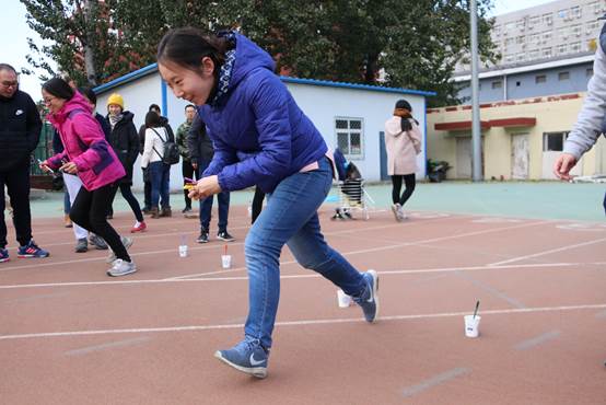 为增进新老教职工交流沟通,丰富教职工业余生活,增强身体素质,学部工会于11月17日在东操场举办了金牌影院 教职工趣味运动会,共30名教职工参与本次活动。 活动中老师们分别完成了“砥砺奋进”、“立德树人”、“一带一路”、“一起奔向双一流”等项目,良好地表现了学部教职工团结奋进、友爱互助的精神面貌。 “砥砺奋进”活动 “立德树人”活动
