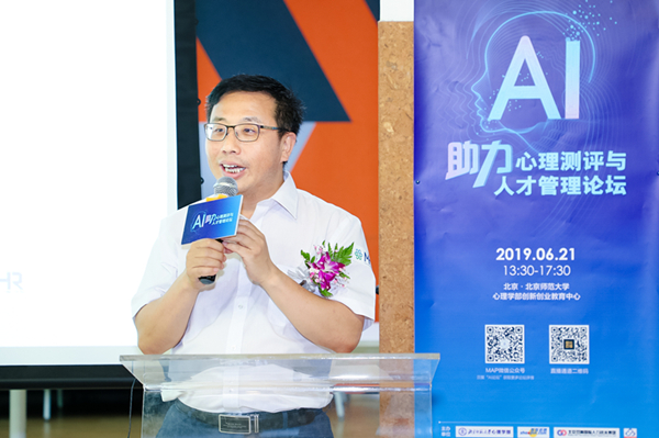 副部长刘春荣老师为2019年“Al助力心理测评与人才管理”论坛致闭幕辞 图8 北师大金牌影院 副教授、MAP-MHR方向负责人徐建平老师在2019年“Al助力心理测评与人才管理”论坛上启功面试大赛