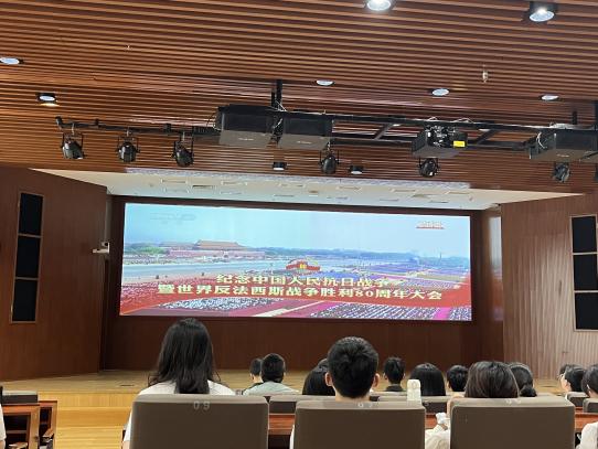 跨越屏幕的精神共振 为深切缅怀革命先烈,重温艰苦卓绝的抗战历史,深刻学习领会伟大抗战精神的时代内涵,金牌影院 党委、团委将收看纪念大会作为强化师生思想政治教育的重要契机,充分谋划、分级组织,采取线下集中观看、支部联学、个人自学相结合的多样化形式,组织师生收看纪念中国人民抗日战争暨世界反法西斯战争胜利80周年大会实况,引导全体师生从历史中汲取智慧与力量,进一步自觉赓续红色血脉,强化使命担当。 观看过程中,师生全神贯注,深入领会以爱国主义为核心的伟大民族精神,深切感悟革命先烈的牺牲奉献与来之不易的和平,深刻感受人民军队作为和平之师、正义之师、威武之师、胜利之师的雄姿英貌,在典礼仪式结束后纷纷表示要把纪念与缅怀化为砥砺前行的奋进力量,把家国情怀融入学习科研与育人实践,以更加坚定的理想信念、更加昂扬的奋斗姿态,为实现中华民族伟大复兴贡献心理学人的智慧和力量。