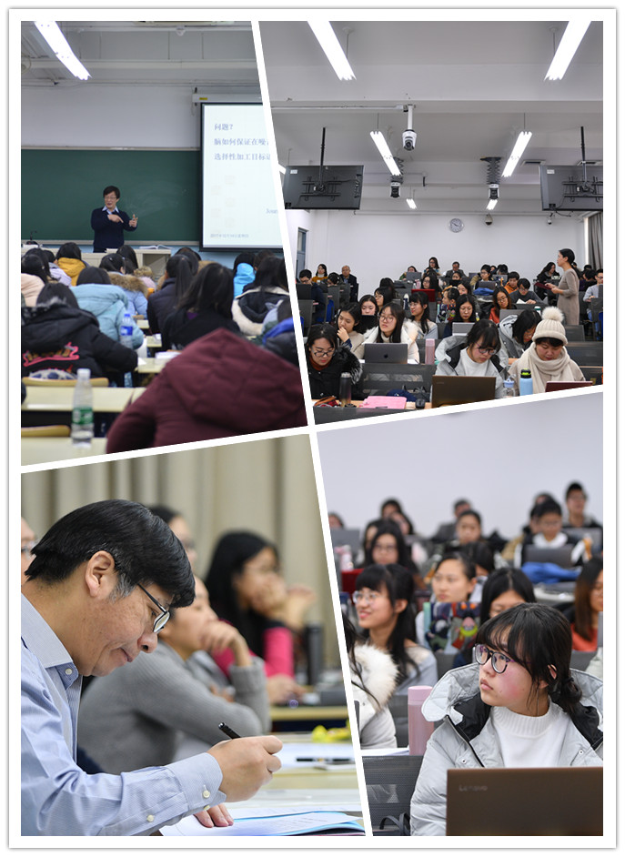 图1 专家评估会现场 学部副部长林丹华教授从人才培养的目标定位、过程改革、保障体系以及人才培养的成效四个方面详细汇报了学部本科人才培养的情况。林老师强调,学部的人才培养目标定位于培养拥有优秀的人文与科学素养、扎实的专业基础、开阔的国际视野、强烈的社会责任感的拔尖创新型学术人才和高水平的应用人才,造就心理学的领军人物。 图2 副部长林丹华汇报本科生教学情况 专家组认真听取了汇报并对学部本科生人才培养的总体工作给予了肯定,并对报告内容提出了一些建设性意见。 现场评估专家组还分组前往教室听课,承担学部《心理学导论》的陈宝国老师、《管理心理学》的孙晓敏老师以及《社会心理学》的寇彧老师代表学部教师展示了本科课堂教学;专家组还组织教师代表、学生代表以及教学管理人员进行座谈,听取师生对学部本科生教学的意见和建议;专家组还抽查了学部近三年的试卷档案、毕业论文(设计)等材料。期间,专家组还参观了金牌影院 实验室、心理健康服务中心等。 图3专家组在《心理学导论》课堂听课