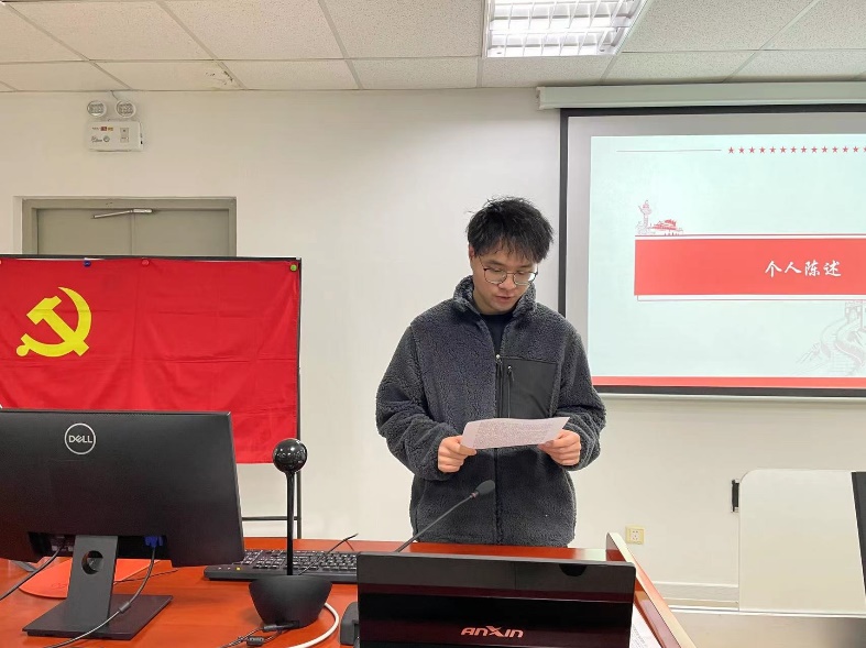 会议开始前,王赫同志首先对本次大会的流程进行了介绍。 会议开始后,首先由侯俊彦同志进行个人陈述,向党组织汇报预备期的思想、学习、工作等各方面的表现。完成个人陈述后,在场同志对侯俊彦同志的表现进行民主评议,最后由全体正式党员对侯俊彦同志的转正申请进行表决。随后支部还依次开展了郑远同志和赵启同志的转正大会。