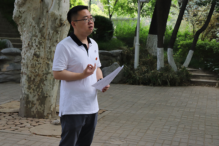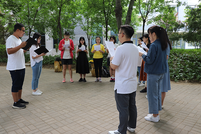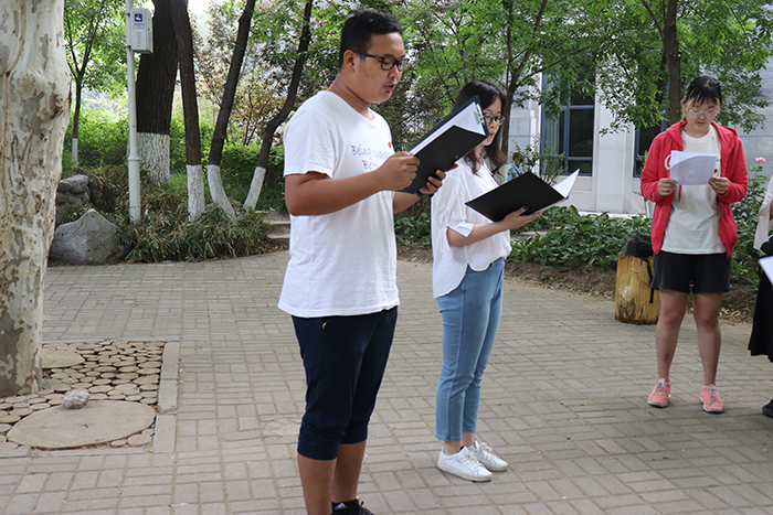 2019年5月16日早上7点,金牌影院 2016级三个团支部在五四纪念碑处合办了朗诵快闪活动。张照鹏老师出席了活动。 同学们在钟浩宇同学和陈逸群同学的主持与带领下,齐声朗诵现代诗《我的祖国》。 朗诵结束后,张照鹏老师结合心理学专业,强调同学们要有集体意识和全局意识,关注国家、社会和集体,客观全面地看待热点社会事件,希望作为青年党员和共青团员的同学们有担当,有作为。 本次朗诵快闪团日活动圆满结束,同学们用郎朗书声为祖国献上祝福,一起学习五四精神。 (汪悦供稿;张艳秋供图) |