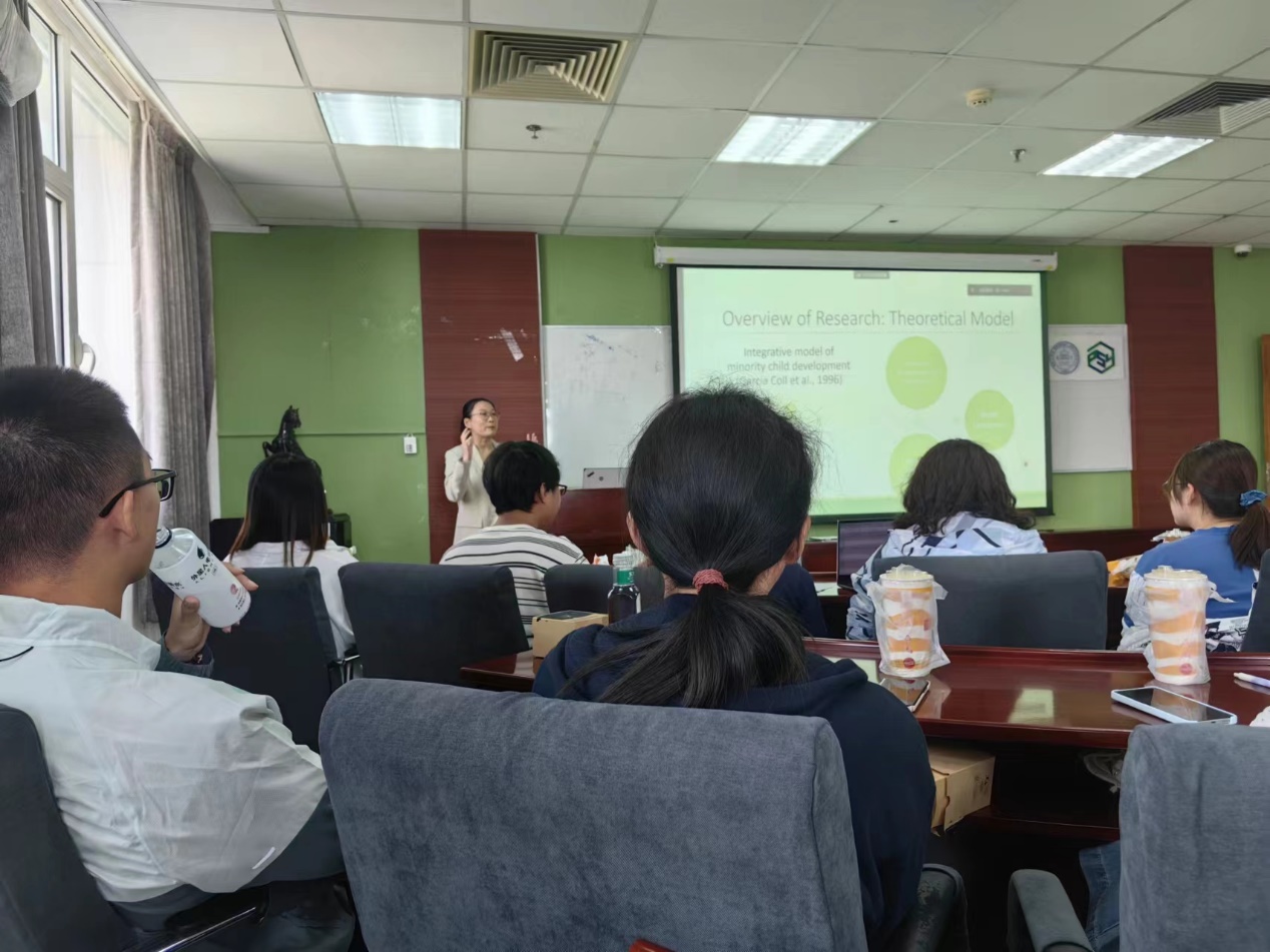 首先,胡月琴老师为同学们介绍了申艺善老师,了解了申艺善老师的研究领域。 接下来,申艺善老师介绍了本次宣讲的主题,主要介绍少数族裔家庭中的亲子关系与青少年发展,探讨移民出身和少数族裔青少年的一些普遍经历是否以及如何促进或阻碍他们的心理、行为和学业发展。
