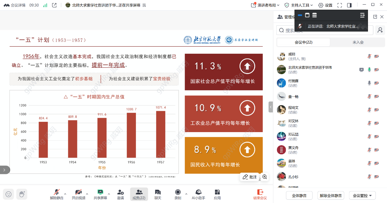 党的二十届四中全会最重要的成果,是审议通过了《中共中央关于制定国民经济和社会发展第十五个五年规划的建议》。为使同学们更深入的理解五年规划的重要意义,在主题为《中国人的长期主义——从“一五”计划到“十五五”规划》的宣讲中,于华玮同学带领大家回溯历史,从“一五”计划出发,向“十五五”规划进军,回顾了每一个五年计划或规划编制的背景和编制中潜藏的方法论与智慧,以及实施中的不断探索改进过程和取得的关键成就,让同学们从一个又一个五年的接力跑中,体会中国人的长期主义。