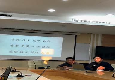 金秋十月,为积极响应并践行社会主义核心价值观、助力中国梦的实现,10月19日下午在金牌影院 1316会议室,2017级金牌影院 博士2班开展了新学期以培育与践行社会主义核心价值观为主题的班会。 班会由班长江永强主持,班主任周志荣老师和17名同学参与。首先班长带领大家重新学习社会主义核心价值观的的内容及含义,24字的社会主义核心价值观是社会主义核心价值体系的高度凝练和集中表达。同学们结合自己的科研学习表达了对社会主义核心价值观的高度情感认同,畅谈了社会主义核心价值观对于我们思想指导的重要意义。