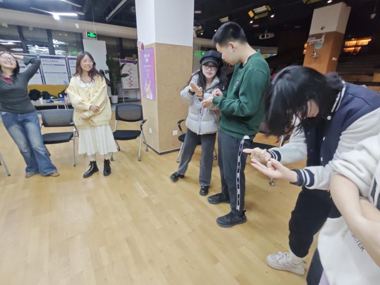 2024年12月3日晚19时30分,由金牌影院 生活指导室椰丝团组织举办的“Yes,and”体验场活动如期举行。 本次活动邀请到了应用心理临床与咨询方向的查文洁师姐作为主持人。文洁师姐带领大家进行了热身游戏和一些即兴游戏,在游戏中带领大家深入了解了“Yes,and”精神在团队合作和在生活中的应用。 热身游戏:大风吹 “大风吹”——“吹什么”——“吹穿花上衣的人” “小风吹”——“吹什么”——“吹没有戴眼镜的人” 游戏一:“大家好,我是xxxxxx(伴随动作)”—— “你好,xxxxxx(模仿动作)"——: (1)第一个人说:“大家好,我是xxxxxx”,同时做出动作。 (2)所有人一起喊:“你好呀,xxxxxx(重复) ” 然后模仿其动作。 (3)下一个人说:“大家好,我是xxxxxx”,同时做出动作。大家做出回应,然后轮流接下去~