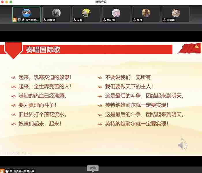 首先,全体起立,奏唱《国际歌》。