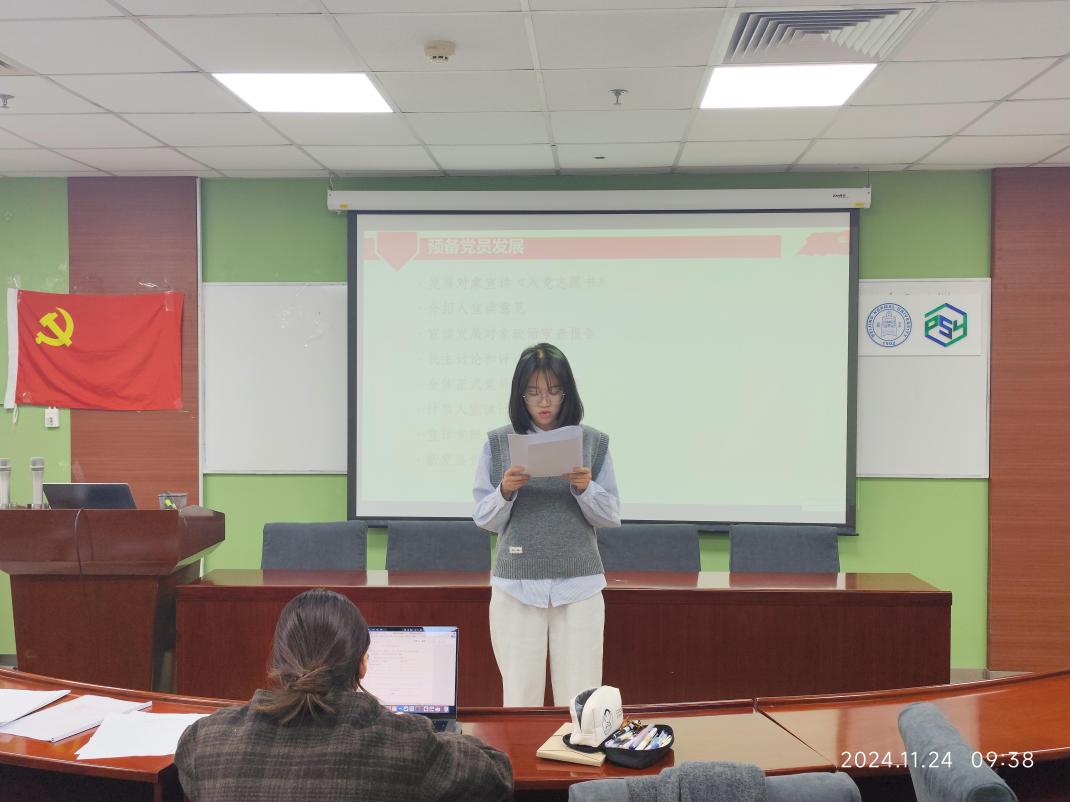 2024年11月24日上午9:00,金牌影院 本科生第二党支部在后主楼1420东会议室成功召开2024-2025学年秋季学期第三次预备党员发展大会,会议由党支部书记黄彤彤同志主持。支部内共4名党员与8名预备党员参会。