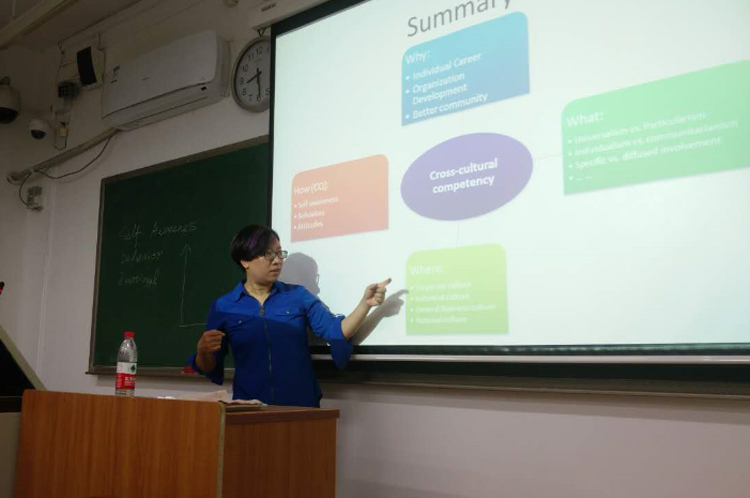 心理学学士、硕士。具有丰富的国外工作经验,在社会网络和跨文化适应方面也有诸多科研成就。 李姣博士指出跨文化是一个U型的曲线,其中的关键在于如何通过学习的过程和自我否定的过程适应分化分布。由于文化智商 culture intelligence(包括Head 认知、Body 行为、Heart态度三个维度)的个体差异,适应行为要从认知层面走到行为上是存在一定难度的。据此,跨文化适应的训练就显得尤为重要,跨文化训练的目的在于增强外派人员的自我意识,因为有了意识才有行为的该变。 其中,李姣博士特别强调文化不是用来判断的,当与不同文化相遇时,我们不能简单地比较其优劣,判断其好坏。所以,当我们面对文化冲突与不一致的时候,我们需要在两种文化交融的地方找到自己的适应点和优势点。由于近几年中国对于东南亚和非洲投资项目呈现逐年上升的趋势,对于跨国企业的HR们,如何协调不同文化背景下的员工更好地相处工作就成为了需要重点关注的地方。 对于如何选拔与培训外派人员,李姣博士也给出了四个标准,包括:个人能力的胜任、家庭情况的匹配、组织需要以及文化背景。最后,李姣博士对于这次讲座做出了简单的总结(如下图所示): 讲座期间,李姣博士列举了很多生动的实际案例来更好地解释跨文化适应,注重和台下同学的交流互动,整个讲座氛围轻松愉快。最后,同学们用热烈的掌声表达了对李姣博士的感谢,也为本次讲座画上了圆满的句号。讲座结束后,同学们也纷纷与李姣博士合影留念,继自己的问题和思考与李姣博士进行深入交流。 |