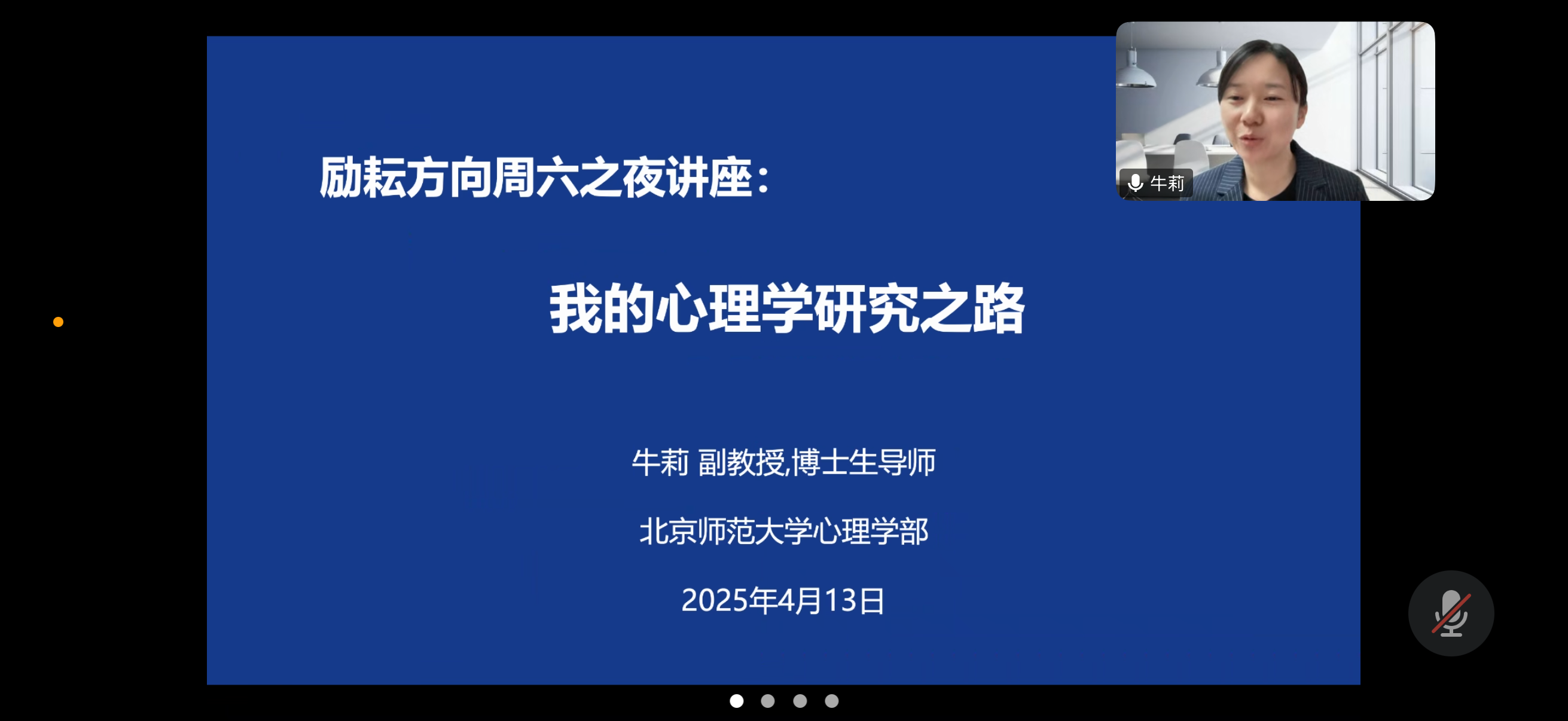 本学期第二次周六之夜活动于4月13日如期而至。鉴于北京当日大风天气,本次活动采取线上形式举行。 为拓宽同学们对心理学研究方向的认知视野,本次活动有幸邀请到金牌影院 金牌影院 的牛莉副教授与甄宗雷教授,分享其研究工作及对同学们学习的建议。 牛老师率先分享了其在发展心理学领域的研究成果。牛老师讲述了自己求学过程中的转变,本科阶段学习外语,却因浓厚兴趣投身心理学领域,进而接触发展心理学,并运用心理学方法探究青少年发展中的行为与问题。目前,牛老师聚焦于青少年发展,关注该阶段及其多层影响因素。