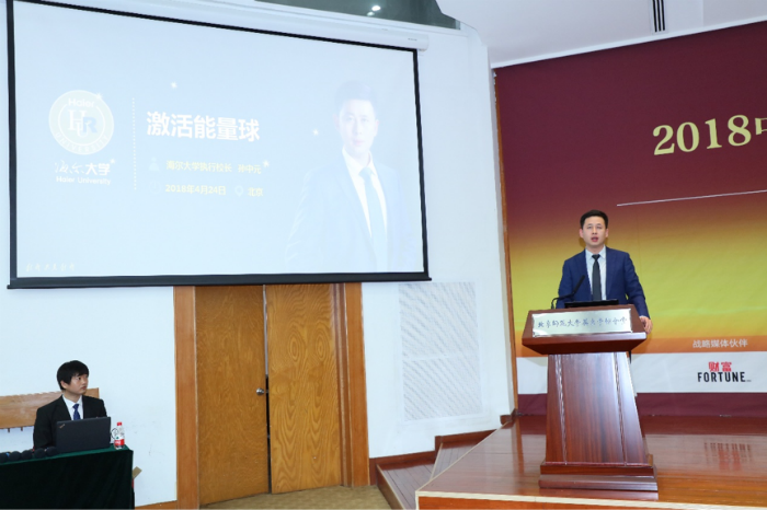 图12:海尔大学执行校长孙中元先生发表主题演讲 来自海尔大学的执行校长孙中元先生解密海尔创业创新的时代逻辑,现阶段转型探索的前沿做法,以及提升创客心理资本的管理机制,激活企业发展的能量球。