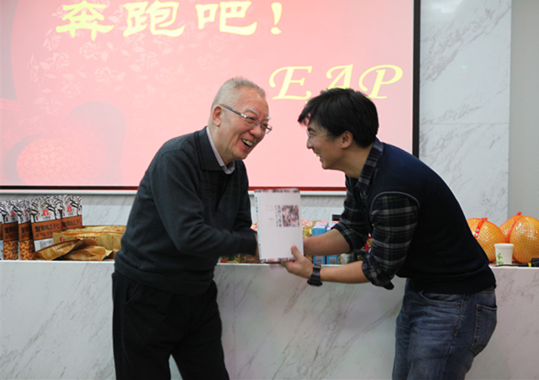 2015年1月19日,刚刚结束了一个学期内容繁多的课程与考试,金牌影院 心理学院2014级应用心理专业硕士EAP方向的学生依旧精力充沛,在本学期课程的最后一天,组织举办了一场“奔跑吧,EAP”的主题集体活动。本次活动在心理学院MAP中心的支持和帮助下,老师同学们各显神通,将这次活动从入场到结束都组织的有声有色,有年味有动感,有惊喜有感动,有收获有成长。 活动的热身节目是非常具有中国年味的猜灯谜,这一节目弥补了同学因学习要求而无法在家过元宵节的小小遗憾。猜灯谜结束后,80岁高龄的彭聃龄教授脸上洋溢着笑容走进了同学们的视野,这也是学院为2014级应用心理EAP方向的学生带来的第一大惊喜。彭聃龄老师慈祥的笑容和温厚的话语让同学倍感亲切,也让同学们回忆起学期初彭老师为大家教授普通心理学课程的温馨场景。同时,彭老师还将附有他签名题字的最新作品作为特等奖的奖品送给同学,更是让同学们的心里感到无限暖意。 图一 北师大心理学院彭聃龄教授向2014级应用心理专业硕士EAP方向的学生赠书 心理学院书记乔志宏教授,副院长林丹华教授、刘力教授、张西超教授,副书记王瑞敏老师,院长助理胡思源老师以及刘翔平教授都在百忙之中专程来和学生们一同庆贺一同游戏,这也是心理学院为EAP学生们带来的第二大惊喜。各位领导在致辞鼓励了2014级应用心理专业硕士EAP方向的学生之后,还参加了活动中的第一个环节-------萝卜蹲。在轻松愉快的气氛中,几位老师以及彭聃龄老师一同做起了萝卜蹲的游戏。在这个时刻,游戏已不止是游戏,更是搭建在老师和学生中间的桥梁;老师也不仅是老师,更是学生的亲密的家人和朋友。 图二 北师大心理学院领导参与2014级应用心理专业硕士EAP方向班学生活动 接下来的“你来比划我来猜”游戏更是让活动气氛在游戏选手的竭力表演中和观众的爆笑声中再度升温。游戏结束后,心理学院副院长张西超老师推着一个写着“EAP黄埔一期生日快乐”的蛋糕走进教室,把这场活动推向了高潮,也是学院MAP中心为EAP学生们精心准备的第三个惊喜。带着惊喜和感动,师生们同庆2014级应用心理专业硕士EAP班诞生一周年,以及同庆几位在1月份出生的同学生日快乐。彭聃龄老师感慨地说:“每当这种时候,我们就没有年龄差异了,男生都是小伙子,女生都是小姑娘。” 图三 北师大心理学院2014级应用心理专业硕士EAP班集体活动气氛温馨,惊喜不断 最后的“当然了”游戏和踩气球游戏在同学们兴奋的欢呼中圆满地结束了这次狂欢party,也结束了2014级应用心理EAP方向专业硕士第一学期的课程。浓浓的不舍和热切的期待,都会化作EAP的同学们更强有力的动力,在今后的课程中有更出色的表现,不仅让我们为北师大心理学院骄傲,更让北师大心理学院为我们自豪。 图四 北师大心理学院2014级应用心理专业硕士EAP班集体活动集锦 也在此感谢2014级应用心理专业硕士EAP方向的学生王凯、王坤、施鸿宇、逯小方、崔颖丽、高逸超、金昊天、孙美宇、戴铮然几位同学利用课余时间精心筹划了了此次班级主题活动;感谢活动主持王石、刘晓曦、纪圆北和黄凯莉同学;以及亲自题写的对联,为活动增添气氛与诗意的高川同学。 图五 北师大心理学院2014级应用心理专业硕士EAP班集体活动留念合影 新年新气象,带着梦想奔跑吧,EAP! 供稿人:2014级MAP-EAP班 张武悦同学 |
