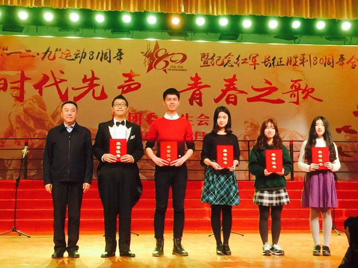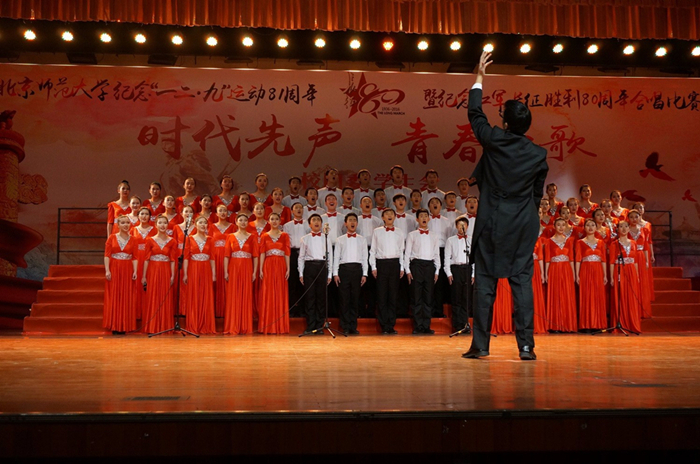 2016年12月10日晚19:00,2016年金牌影院 纪念“一二·九”运动81周年暨纪念红军长征胜利80周年合唱比赛在学生活动中心隆重举行,心理学院合唱队作为第4支队伍闪亮登场,放声唱响《十送红军》。 本次的合唱队以心理学院2016级本科新生为主力。郑涵予任合唱队指挥,钢琴和小提琴伴奏分别由侯森宝和张维念担任,季天胤和李然两位同学为合唱伴舞。 演唱以富有感染力的舞蹈起势,展现了浓厚的军民之情。委婉动听的歌声与琴瑟乐音和谐搭配,演绎出同学们对红军战士崇高的敬意和深切的热爱,体现了深切的爱国情怀。