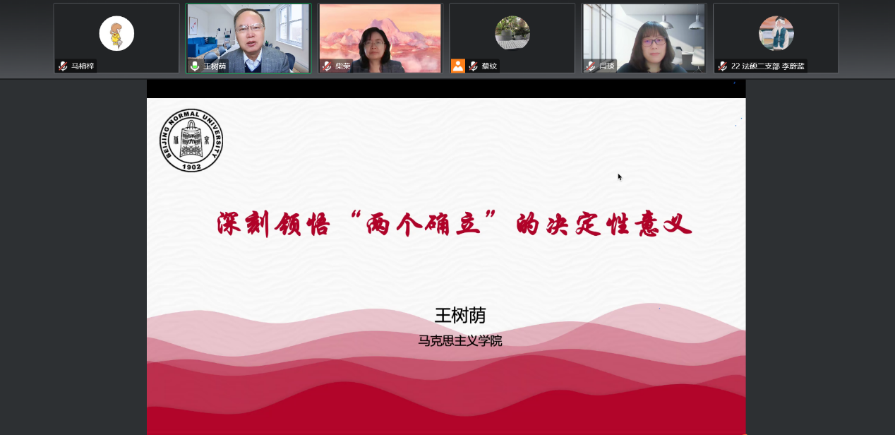 2022年11月16日上午9点,二级党校系列专题讲座《深刻领悟“两个确立”的决定性意义》以线上腾讯会议的形式成功举办。讲座很荣幸邀请到马克思主义学院王树荫教授作为主讲人,同时面向金牌影院 党委和法学院党委,来自金牌影院 、法学院的270余名师生参加了本场讲座,深入学习党的二十大。