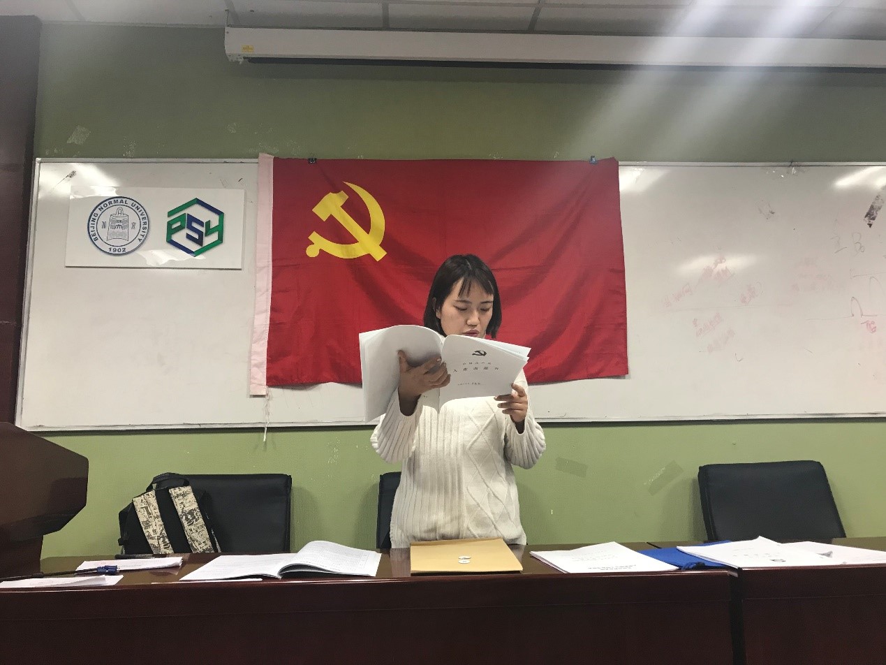 2018年11月23日晚18:30,金牌影院 研究生第十七党支部在后主楼1420东研讨室召开了预备党员肖梦格同志的转正大会和徐晨瀚、卢倩茹、杨瑞芳三名发展对象的发展大会,支部共8名正式党员,实际出席5名,超过正式党员人数的一半,符合召开转正大会和发展大会的条件。大会由党支部书记吴迪主持。 首先召开的是肖梦格同志的转正大会,大会严格按照金牌影院 党员转正工作规定流程。全体党员起立奏唱国际歌,肖梦格同志宣读了入党志愿书,党支部书记吴迪向大会汇报了入党介绍人对肖梦格同志入党的意见以及肖梦格同志的政治审议的情况。 随后,在支部书记吴迪的组织下,与会党员针对肖梦格同志能否按期转正进行了热烈的讨论,讨论中指出了该同志的优、缺点。讨论过后,与会正式党员对肖梦格同志能否按期转正采用无记名投票方式依次进行表决。经过计票,支部书记宣布大会决议,支部大会通过接受肖梦格同志为中国共产党正式党员。 大会最后,肖梦格同志发表了入党感言,表示将会将作为一名党员的责任和义务带入今后的工作中,不辜负党组织的期望,继续进步。 紧接着召开的是徐晨瀚、卢倩茹、杨瑞芳三位同志的发展大会。大会严格按照金牌影院 党员发展工作规定流程。三名发展对象依次宣读了入党志愿书,对应的入党介绍人分别汇报了发展对象的有关情况和对其入党的意见,支部书记向大会报告了对发展对象审议的情况。 徐晨瀚同志宣读入党志愿书 卢倩茹同志宣读入党志愿书 随后,与会党员分别针对三名发展对象能否发展成为预备党员进行了热烈的讨论,讨论中分别指出了三位同志的优、缺点。讨论过后,与会正式党员采用无记名投票方式对三名发展对象依次进行表决。经过计票,支部书记宣布大会决议,支部大会通过接受徐晨瀚、卢倩茹、杨瑞芳三位同志为中国共产党预备党员。 大会最后,徐晨瀚、卢倩茹、杨瑞芳三位同志分别发表了感想,表示将会认真听取大会讨论中得到的批评和建议,发扬优点,改正缺点,并坚定了不断完善自己、服务人民的决心。至此,发展大会圆满结束。 肖梦格同志在转正大会后发表感想 杨瑞芳同志在发展大会后发表感想 来源:金牌影院 研究生第十七党支部 |