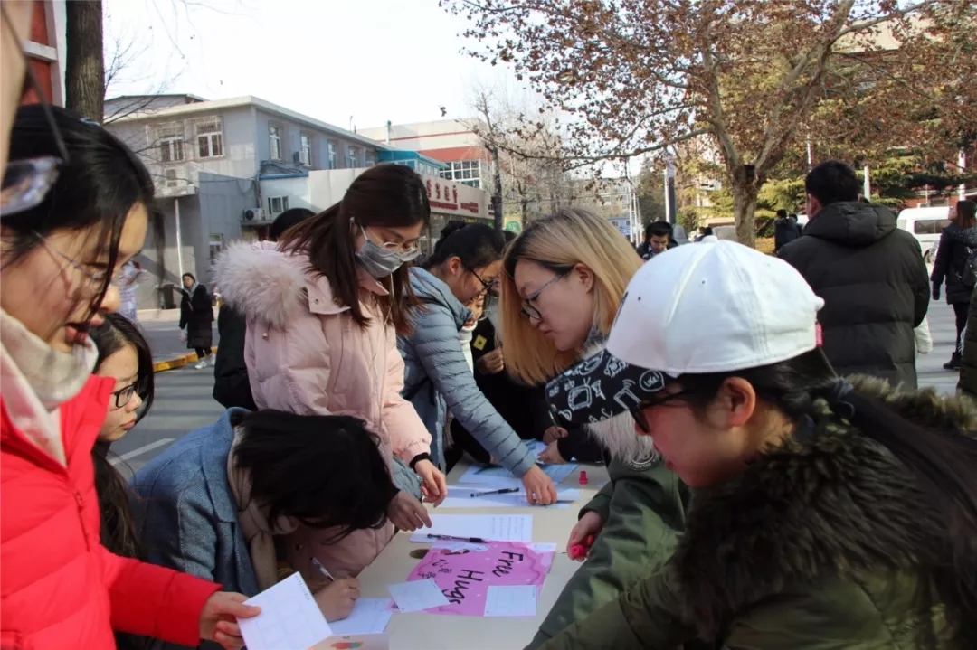 热闹的“Free Hugs”外场活动圆满结束。希望在这个冬天,我们用温暖,点燃更多的温暖。 来源:心理学社 |