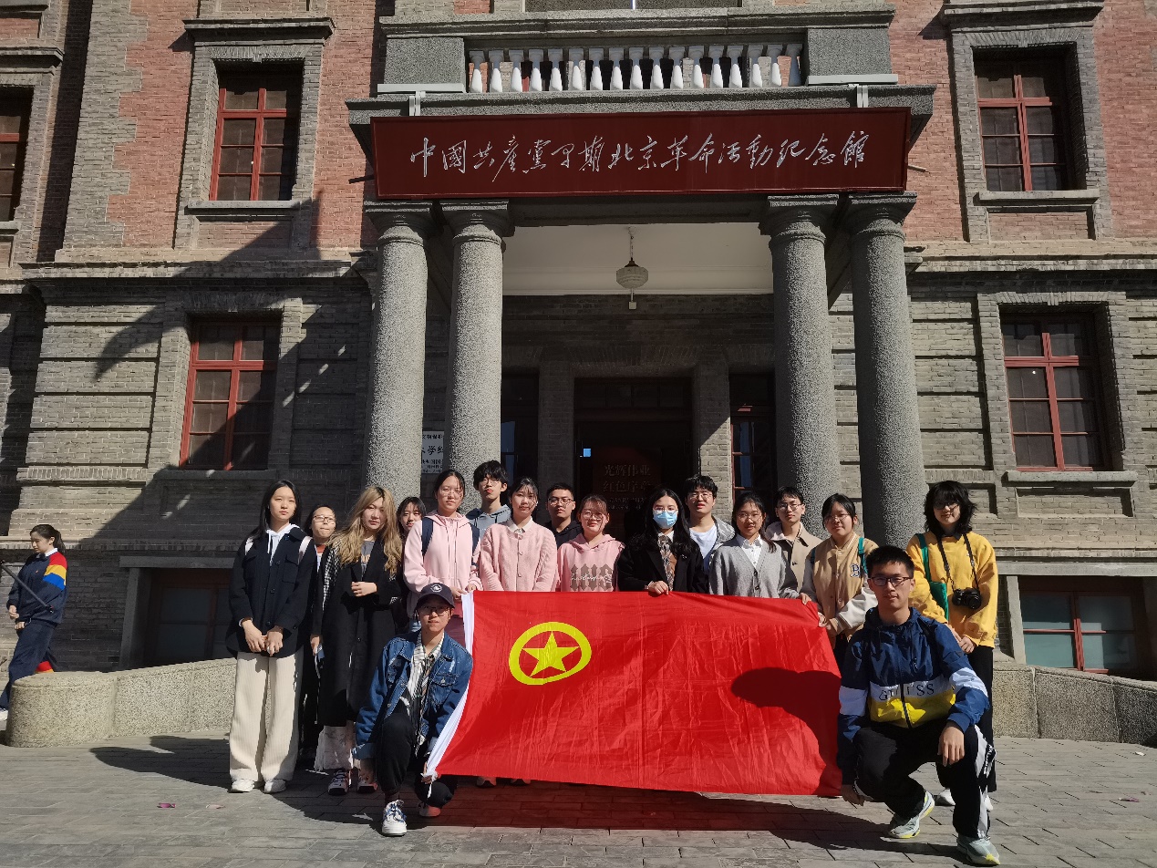 参与活动成员于金牌影院 南门集合,乘车前往北大红楼与中国共产党早期北京革命活动主题展,岳鸿羽同学介绍了本次团日的活动和活动目的,并于北大红楼门前进行了合影。