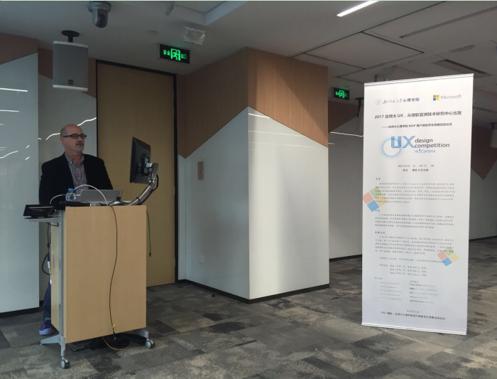 在这大家都思乡心切的时节里,北师大心理学院MAP用户体验专业并没有停止前进的步伐。磨合已久的北师大心理学院MAP用户体验专业与微软亚洲技术研究中心合作的学生竞赛,开赛在即! 1月12日下午,北师大心理学院MAP教育中心主任孙舒平老师、MAP教育中心任若楠老师、应用心理专业硕士用户体验方向负责人刘伟老师、UX方向辛欣老师以及2016级用户体验方向全体学生来到了微软北京总部,参与微软北师大心理学院用户体验学生竞赛启动仪式。 图1北师大心理学院MAP中心主任孙舒平女士在BNUX & Microsoft学生竞赛启动仪式上致辞 本次竞赛将在以微软亚太区设计总监Douglas Walston、微软studio8和刘伟老师为首的导师团队的指导下开启为期4个月的团队竞赛之旅。本次竞赛共设三个课题,60位北师大用户体验方向的专硕学生将被分成九个小组开展团队竞赛。 图2 微软亚太区设计总监Douglas Walston主持BNUX & Microsoft学生竞赛启动仪式 在启动仪式中,微软亚太区设计总监Douglas Walston 先生发表了欢迎致辞,并简要介绍了课题内容及日程安排。随后MAP教育中心主任孙舒平老师代表学院进行发言,表示了院方对本次比赛的大力支持,并预祝同学们在比赛中取得满意的成果。北师大心理学院MAP-UX方向专业负责人刘伟老师向大家介绍了比赛安排和奖项设置,并向同学门提出了他的期许,希望同学们牢记“Show yourself !” 图3北师大心理学院MAP-UX方向专业负责人刘伟老师介绍BNUX & Microsoft学生竞赛比赛安排和奖项设置 在活动现场,同学们完成了各组的选题,并与企业导师进行了初步的交流和沟通。同学们都对接下去的合作充满期待,期望着在实战课题中学习,成长! 图4 北师大心理学院MAP-UX方向学生参加BNUX & Microsoft学生竞赛启动仪式 最后预祝本次比赛获得圆满成功,希望同学们都能在比赛中收获知识,丰富自我,成为更加优秀的BNUXer。 图5 北师大心理学院MAP-UX方向同学们参与BNUX & Microsoft学生竞赛,完成选题并与企业导师进行了初步的交流和沟通