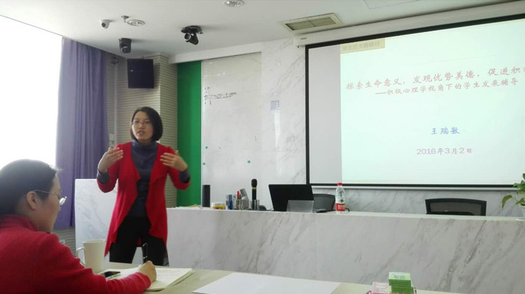 2016年3月2日下午2点,金牌影院 心理学院在后主楼1318开展主题为“探索生命意义,发现优势美德,促进积极发展——积极心理学视角下的学生发展辅导”的班主任、辅导员培训活动。心理学院分党委副书记王瑞敏老师主持本次活动,9位来自心理学院的本科生、研究生班主任和辅导员参与活动。